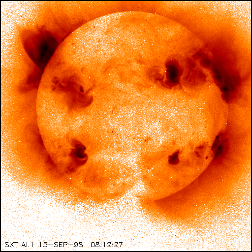 Note incidentally that even though this is a "thin aluminum" image from SXT, recorded almost 6 years after the rupture of the SXT thermal prefilter, almost no trace of stray light is present. In particular the dreaded pinhole brightening at the SE limb has been corrected beautifully.