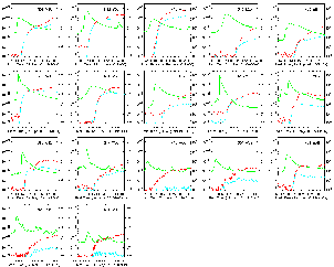 We first pick up all the major SEP events during 1997-2001 that are included in the NOAA list (as maintained by Joe Kunches and others at ftp://ftp.ngdc.noaa.gov/STP/SOLAR_DATA/SAT_ENVIRONMENT/PARTICLES/p_events.lst), and then rearrange the events in the order of the peak flux of > 10 MeV protons. We plot their time profiles with respect to GOES X-ray light curves. The following plot shows all the SEP events that started within two hours from the flare associated with the SEP-producing CME.
